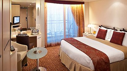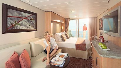 Featured Amenities: Sleeps 1 - 4, Decks 9, 10, 11, 12,Personalized Concierge service. Private veranda,Exclusives: Concierge Lunch and destination seminar,King-size Cashmere™ Mattress and eXhale® bedding.*,Enhanced room service breakfast menu, Sitting area with sofa, Twice Daily Housekeeping, Veranda with lounge seating, Complimentary Tote Bag,Exclusive Destination Seminar,Welcome Sparkling Wine.
